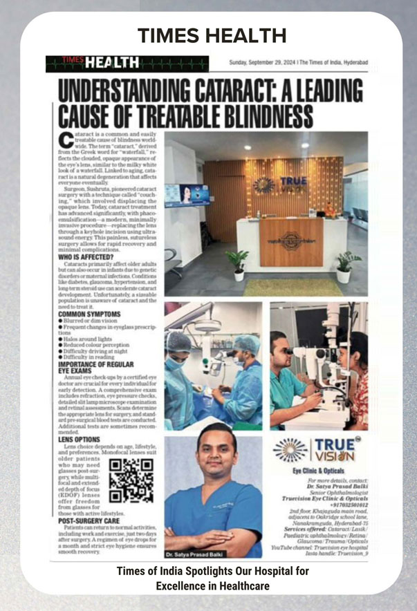 With a passion for ethical and expert healthcare, Dr. Balki founded True Vision Eye Hospital in Khajaguda, serving patients across Manikonda, Kokapet, Nanakramguda, Kukatpally, and Hitech City. The clinic has become a trusted name for its world-class eye care, blending advanced technology with compassionate treatment.